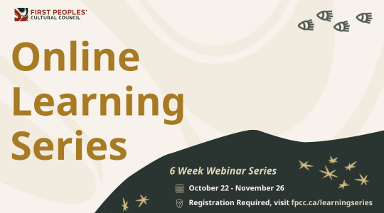Our webinar presenters include leaders of successful arts, language and heritage projects from B.C. First Nations communities. Enjoy learning from Sheri Ptolemy, Myc Sharrat, Shoshanna Green and more! They will share an overview of their work and journeys, including their successes and lessons learned.